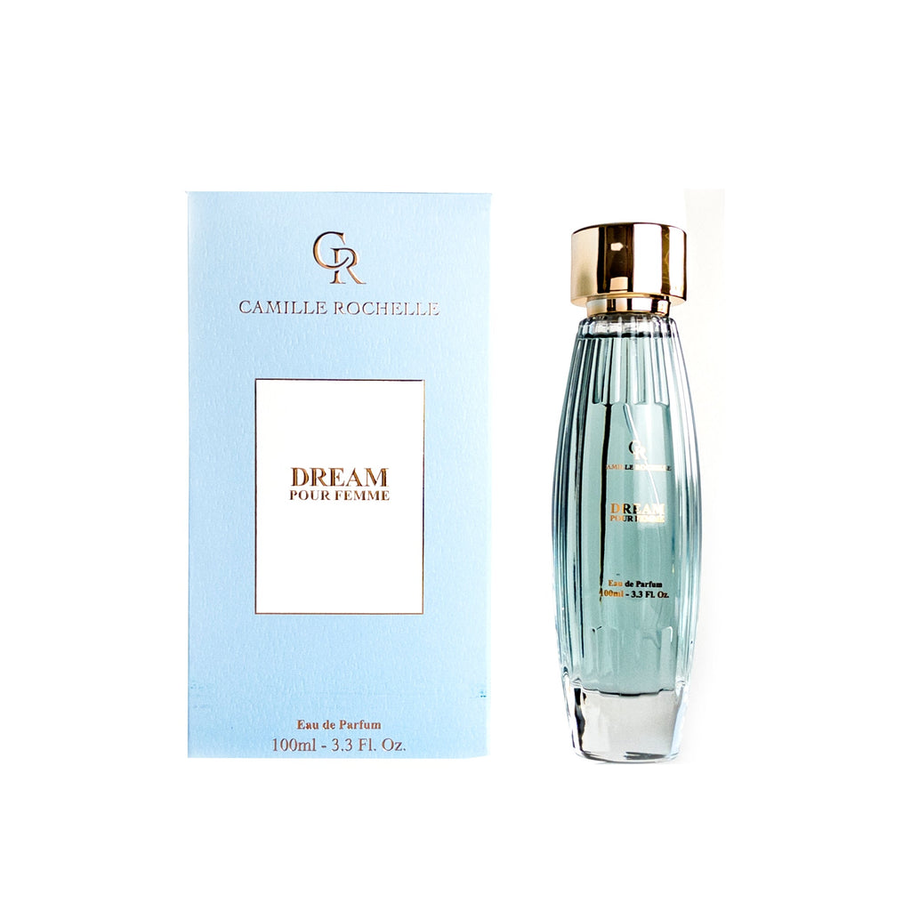 Shop Camille Rochelle's Dream Pour Femme EDP, a Floral Fruity fragrance for women. Dream Pour Femme evokes a dreamy blend of bergamot, pear, and jasmine. Order now.