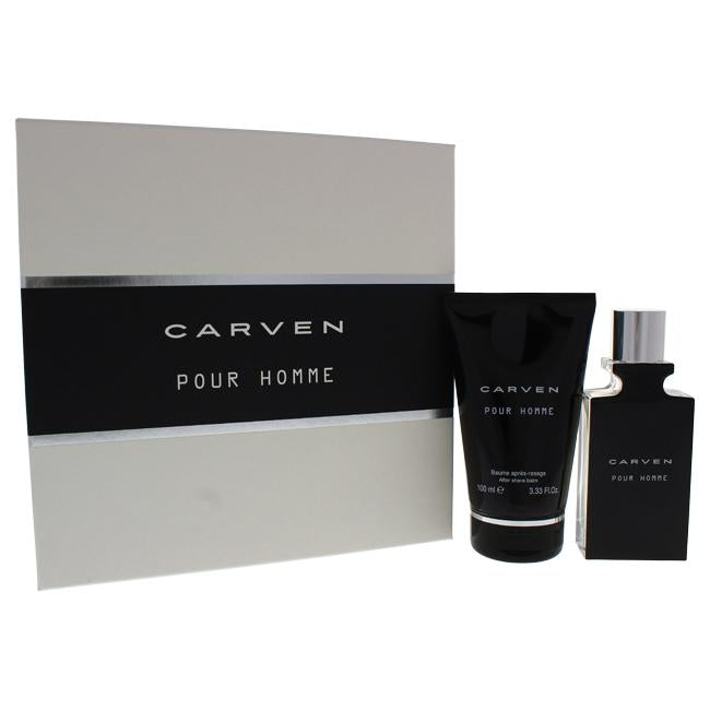 Skip to main contentLaunched by the design house of Carven. This woody spicy fragrance has a blend of violet leaves, grapefruit, nutmeg, sage, cedar, vetiver, and milky sandalwood. Carven Pour Homme by Carven for Men - 2 Pc Gift Set 1.66oz EDT Spray, 3.33oz After Shave Balm