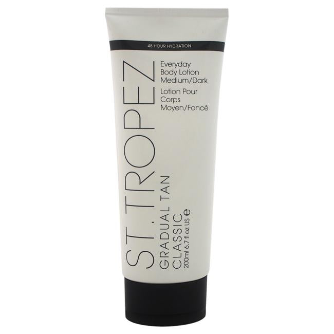 Skip to main contentSt. Tropez Gradual Tan Everyday Body Lotion in Medium-Dark can help you achieve a gorgeous, sun-kissed complexion. Ideal for both sexes, this opulent lotion nourishes the skin with moisture and gives a gradual tan. It is the best option for a tan that looks natural because of its light texture and pleasing scent. St. Tropez medium-dark gradual tanning lotion will help you embrace a glowing complexion.